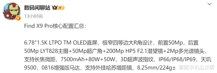 10月16日OPPO将正式发布Find X9系列,作为系列中的高端机型,Find X9 Pro的详细配置已在网上大量曝光,也让用户的期待值大幅度提升。